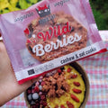 Kookie Cat Wild Berries Cookie: bezlepkový ovos* (32%), kešu oriešky* (10%), zmiešané bobuľové ovocie* (brusnice* (brusnice*, koncentrát jablkovej šťavy*, slnečnicové maslo*), brusnice* (brusnice*, koncentrát jablkovej šťavy*)) (10%), kvapky kakaového masla* (kokosový cukor*, lecithin mandľový proteín*), kokosová smotana*, kokosové maslo*, kokosová smotana* sirup*, datľový sirup*, sušený kokos*, kokosový olej*, kakaové maslo*, prášok z červenej repy*.