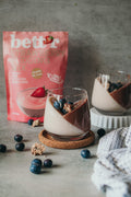 Spomínate si na sladké, krémové potešenie z jahodového pudingu z detstva? Teraz si môžete vychutnať tú nostalgickú chuť zdravším, úplne prirodzeným spôsobom s Bett'r Pudding Mix – pripravený za minútu! Prirodzene bohatá, ovocná chuť a neodolateľná vôňa.