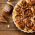 Naughty Nuts Mandľová škorica Tahini je vyrobená zo 100% prírodných, kvalitných surovín. Neobsahuje prísady ako palmový olej alebo cukor. Tahini je osladené datľami, ktoré sa harmonicky spájajú s mandľami, kešu orieškami a škoricou a dodávajú tak chuť skutočných škoricových roliek!