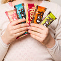 Ak vám jedna čokoládová tyčinka Roobar dokáže vyčariť šťastný úsmev, predstavte si, čo dokáže celé balenie šiestich vašich obľúbených čokoládových príchutí!
